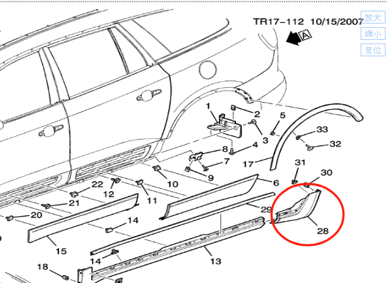 右门槛后饰条,件号25879276